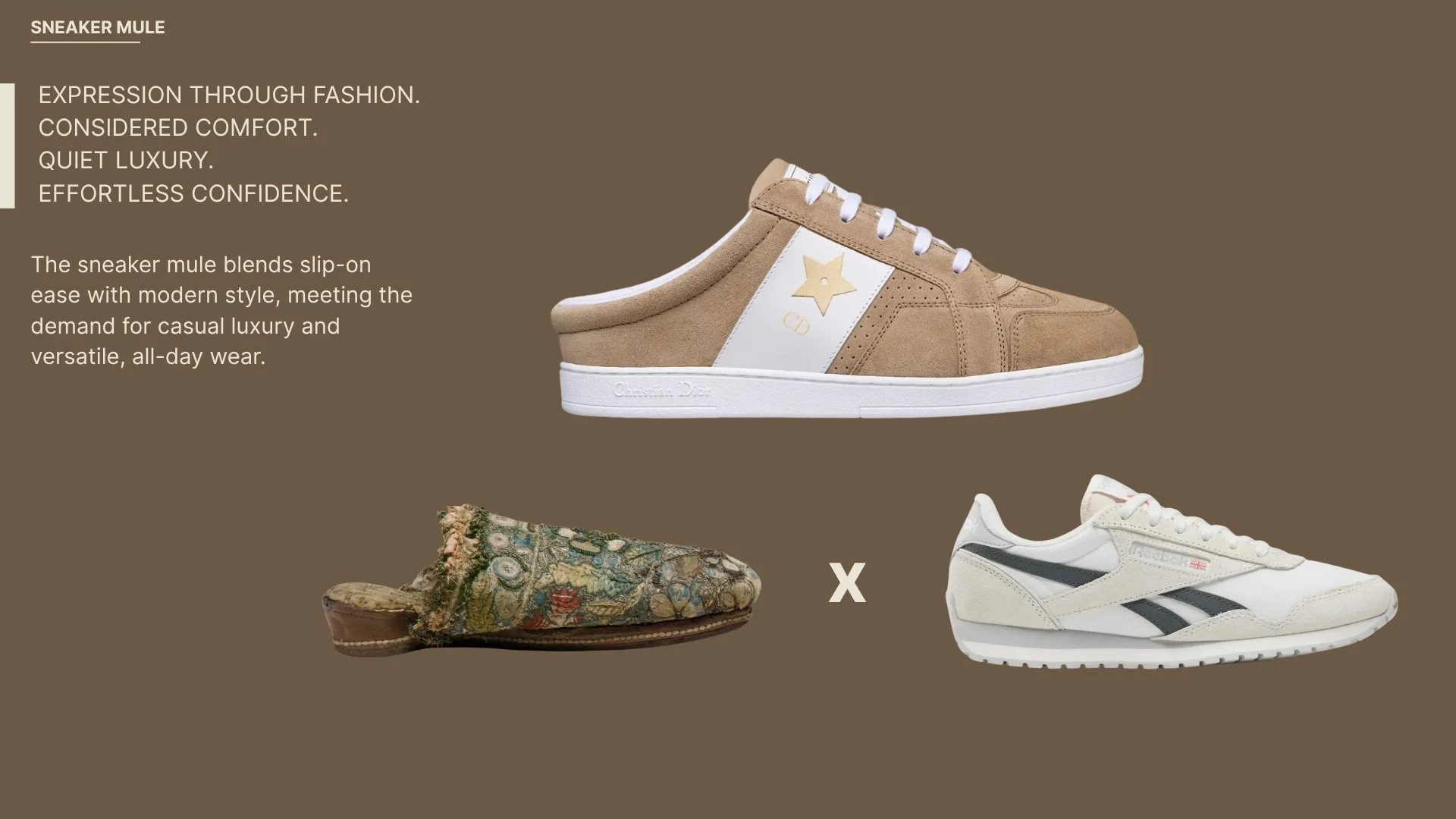 Designing a sneaker mule: combines the traditional mule with a classic sneaker shape, providing the perfect balance of fashion, comfort, and confidence.